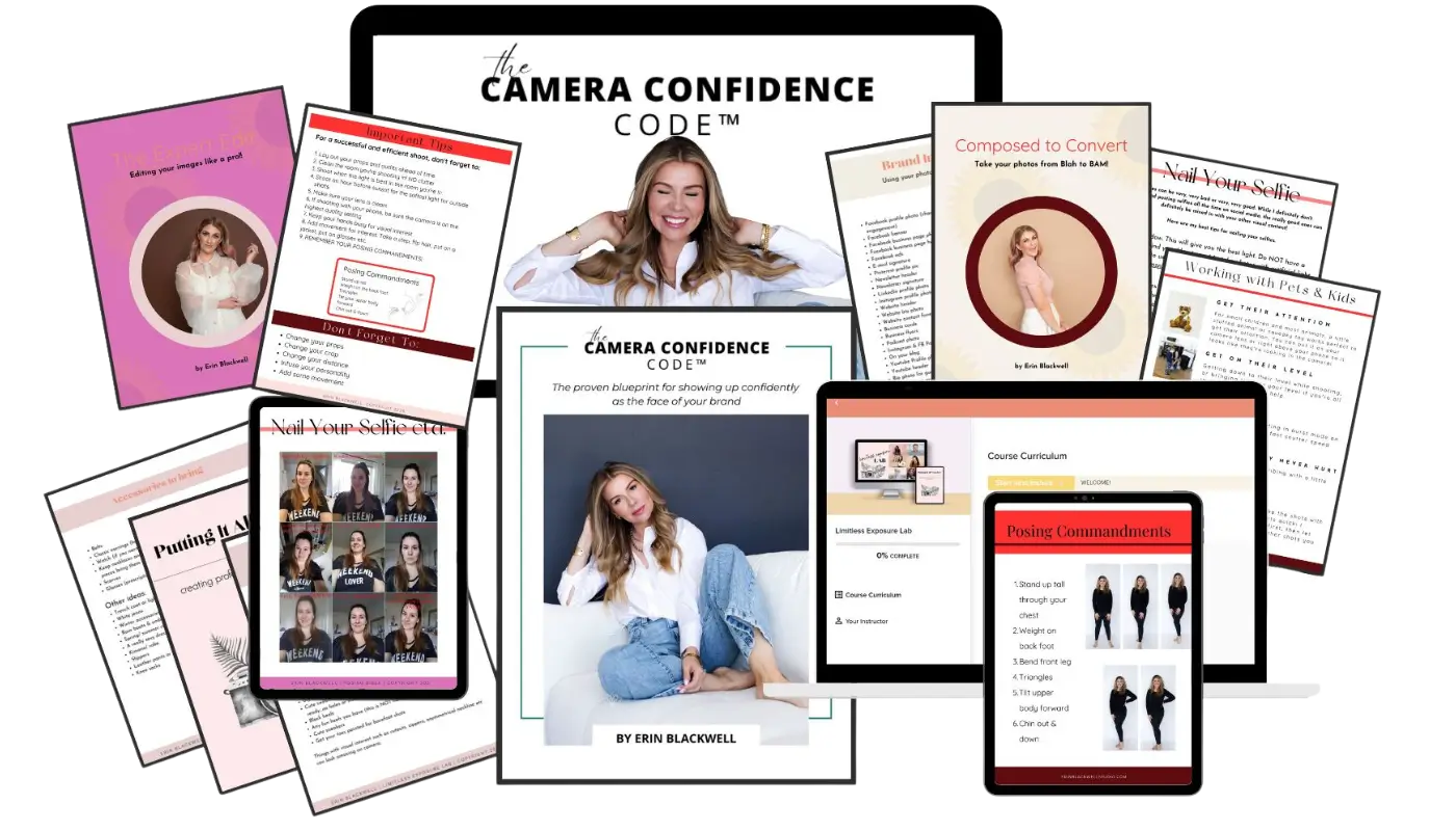 I love, love the Camera Confidence Code! There are so many amazing tips. The posing tips are my fave, but I also really loved having the list of the items I need to get the shots right and having the links of where to buy them... what a time saver.