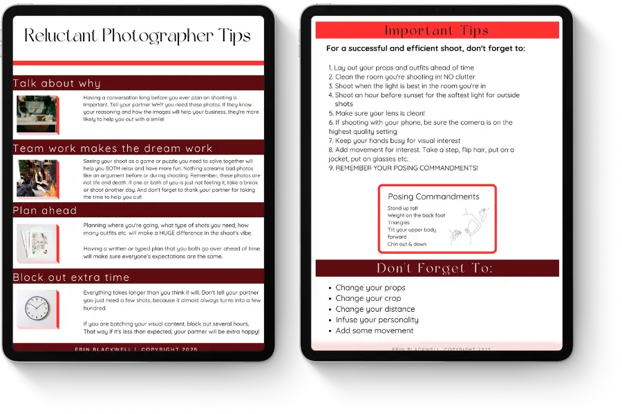 Grab this and get to planning your shoot! The most important tips to remember to make sure you have a fun and effortless shoot.